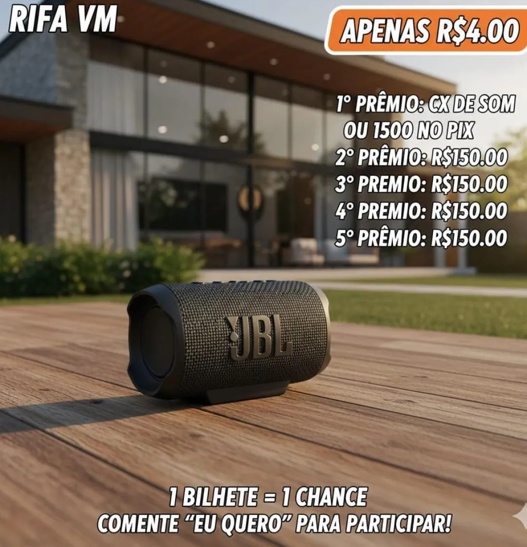 Título: RIFA VM: JBL Xtreme 4 OU R$1.500 no PIX!